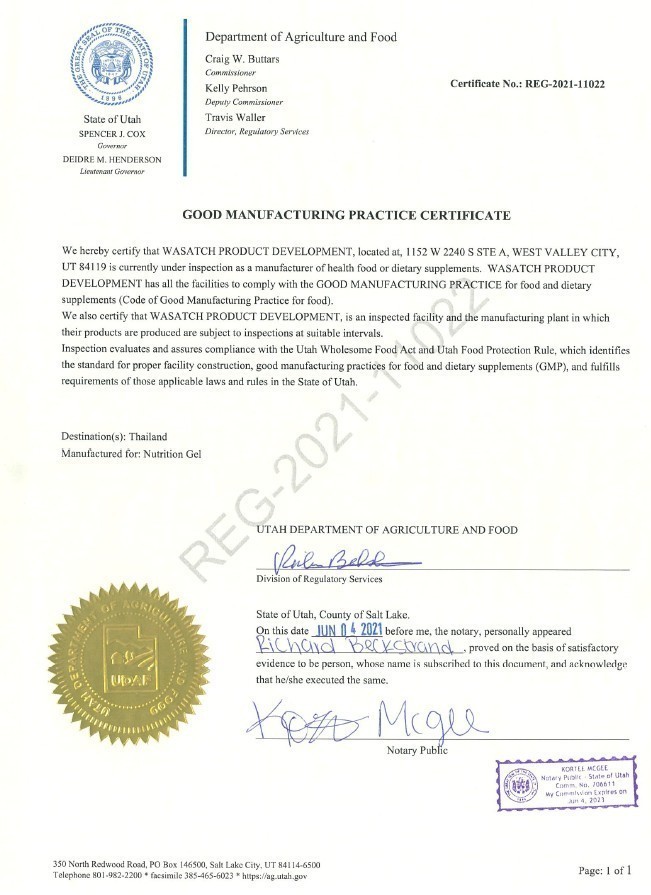 ใบรับรองผลิตภัณฑ์ Agel เลขที่ อย.- ใบรับรองความปลอดภัย Agel